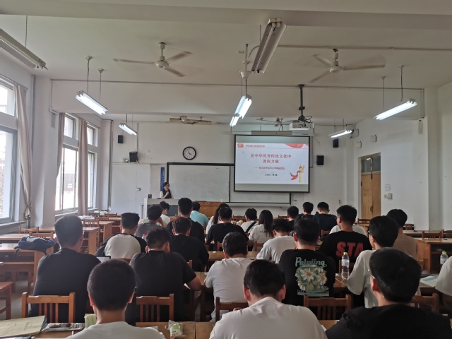 学生第三党支部书记侯娟讲授了题为“从中华优秀传统文化中汲取力量——从习近平总书记用典说开去”的专题党课。