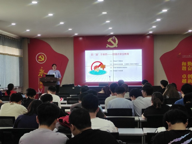 姜瑞瑞从诚信教育、暑期离留校相关工作部署、安全教育等方面展开,引导学生牢固树立“安全第一,生命至上”的理念。首先,面对即将到来的考试,姜瑞瑞再次强调考风考纪教育,她讲到诚信应考,理应成为大学生自觉坚守的道德底线,作弊代价惨重,失信失德,影响深远,希望同学们坚守住底线,加以重视。随后,姜瑞瑞向同学们传达暑期离留校的相关工作通知,希望同学们在假期中要保持通讯畅通,也再次强调了防溺水安全的重要性,加强了学生的安全意识,让学生把防溺水的意识牢记心间,同时针对防中暑、防灾害天气、防食物中毒、防交通事故、防电信网络诈骗、防触电、防火、防盗、文明上网等方面,也详细开展了安全教育,教育引导同学们自觉遵守国家法律法规,增强安全防范意识和应急避险能力。