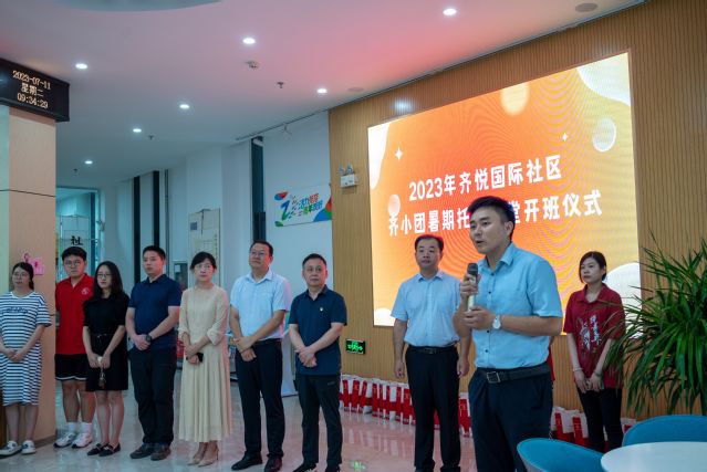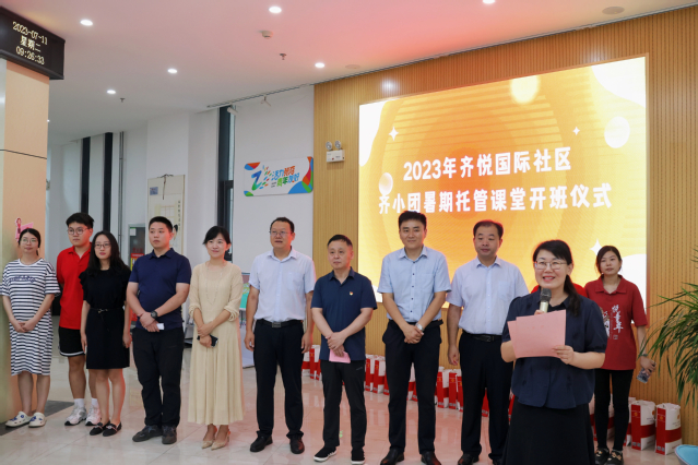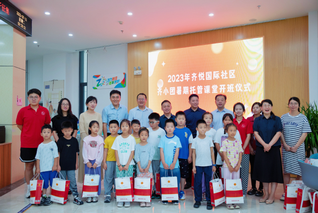 为贯彻落实山东省“百万大学生进社区”相关要求,推进校城融合发展,争当城市发展合伙人,“循梦而行”暑期社会实践团结对认领齐悦国际社区“齐小团”暑期托管课堂项目。7月11日,“齐小团”暑期托管课堂开班仪式于齐悦国际社区党群服务中心一楼大厅举行。