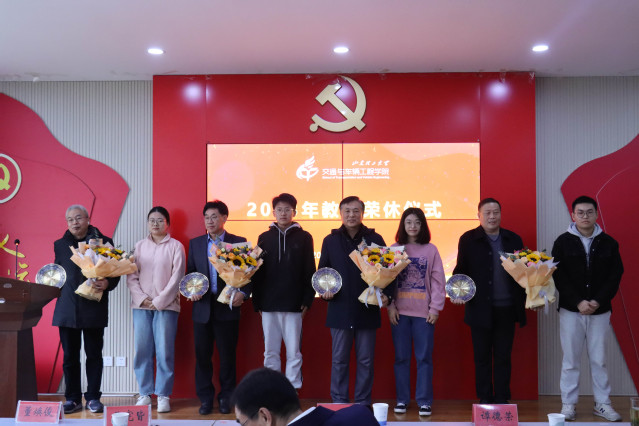 在热烈的气氛中,与会人员共同观看了由学院精心制作的祝福视频;崔焕勇及学院院长高松为荣休老教师颁发荣休纪念盘,学生代表为老师们敬献鲜花。