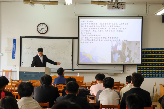 为全面总结上一学期班级建设成果,更好地开展新学期班级建设工作,4月11日下午,学院在12号教学楼分年级举行2023-2024学年第一学期班级建设达标考核答辩会,学院全体辅导员在各年级答辩会场担任评委,本科年级部分班委参加答辩会。