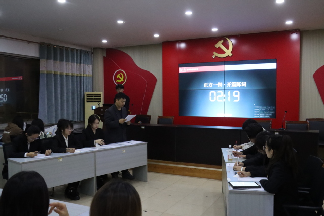 首先是双方一辩开篇立论,紧接着双方二辩彼此反驳对方立论。双方二辩思维灵活、推理缜密。到了质辩环节,正反方三辩分别反问另一方一、二、四辩问题,另一方辩手回答。这一环节,双方三辩逻辑清晰,为后面的质辩小结以及自由辩论奠定了基础。双方辩驳如流,妙语连珠,以犀利的语言和严谨的逻辑,有力的阐述己方的观点。在双方一次又一次的唇枪舌战、针锋相对下,比赛气氛被推向了高潮,同学们凝神聚力,掌声不断。正方和反方选手运用扎实的专业知识,凭借厚实的文化功底,紧密结合自身经验,一针见血反驳对方的观点。此阶段正方三辩和反方二辩精彩的你来我往不时地引起台下掌声。最后比赛进入总结陈词环节,双方四辩各自针对对手逻辑上的漏洞逐一回击,为此次表演赛画上了完美的句号。