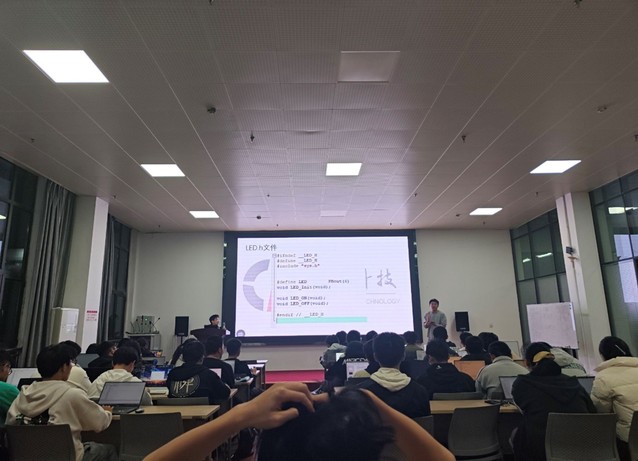 实践操作模块则重点培养了学员们的动手能力和探索能力。通过模仿学长提供的文件,学员们初步理解了按键的工作原理,增强了对按键的认知,为自己亲手编写一份按键程序做了充足的准备。经过一段时间的实践操作与探索,各学员基本可以达到独自编写按键程序的水平。