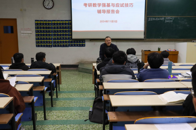 为助力考研学子备考,进一步明确考研数学复习的方向,11月5日晚,学院在四号教学楼103室面向2022级同学开展考研数学强基与应试技巧的辅导报告会。此次报告会由数学与统计学院副教授李亿民、刘宣江主讲,旨在帮助即将准备考研的学生明晰数学复习路径,提升解题能力和应试技巧。