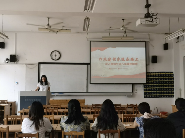 学生第四党支部书记周燕燕讲授了题为“作风建设永远在路上”的专题党课。