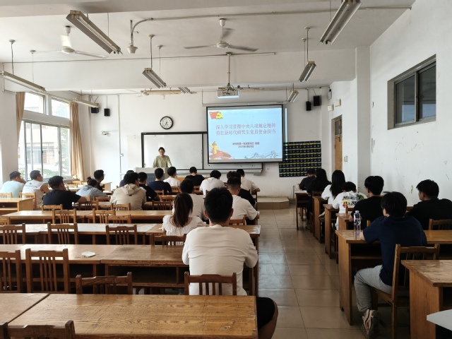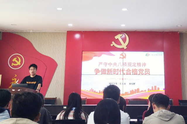 研究生第一党支部书记杨雨讲授了题为“深入学习贯彻中央八项规定精神,勇扛新时代研究生党员使命担当”的专题党课。