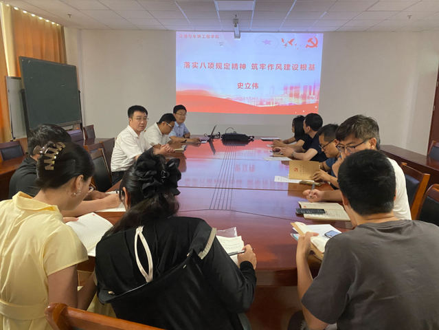 学院副院长史立伟讲授了题为“落实八项规定精神,筑牢作风建设根基”的专题党课。